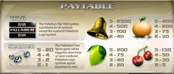 - Palladium Bar Wild symbol substitutes for all other symbols except Scattered Palladium Logo.